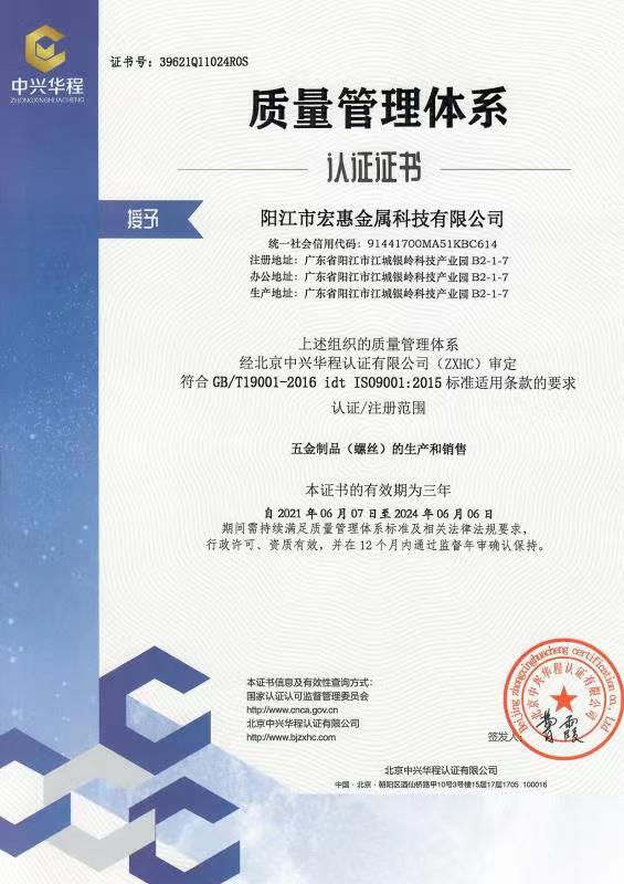 廣東宏惠金屬公司是家20多年一直專(zhuān)注鉆尾螺絲開(kāi)發(fā)與生產(chǎn)的企業(yè),是國(guó)內(nèi)較早做鉆尾的廠(chǎng)家之一,同時(shí)也是國(guó)內(nèi)專(zhuān)業(yè)開(kāi)發(fā)生產(chǎn)鉆尾螺絲的企業(yè)之一。 我司地址為于廣東省陽(yáng)江市江銀嶺科技園距沈海高速白沙出口不到2公里,距陽(yáng)江高鐵站也只有十余公里交通便利。 公司占地120畝,擁有超500臺(tái)套專(zhuān)業(yè)設(shè)計(jì) 生產(chǎn) 檢測(cè)設(shè)備。一個(gè)超200人的專(zhuān)業(yè)團(tuán)隊(duì),能夠嚴(yán)格按照ISO9001質(zhì)量體系要求生產(chǎn)符合GB DIN AS3566 ANSI JIS BS等標(biāo)準(zhǔn)的產(chǎn)品,生產(chǎn)銷(xiāo)售各種高品質(zhì)緊固件系列產(chǎn)品,為中高端客戶(hù)提供優(yōu)質(zhì)服務(wù)。也可按照客戶(hù)要求設(shè)計(jì)生產(chǎn)各種鉆尾,年產(chǎn)高品質(zhì)碳鋼 不銹鋼鉆尾螺絲2萬(wàn)余噸.在各大客戶(hù)的鼎力支持下產(chǎn)品暢銷(xiāo)全國(guó),并遠(yuǎn)銷(xiāo)亞 非 拉 歐等地,在這20多年發(fā)展的道路上我司堅(jiān)持“以質(zhì)量求生存,以信譽(yù)求發(fā)展”的精神理念不斷完善公司體系。